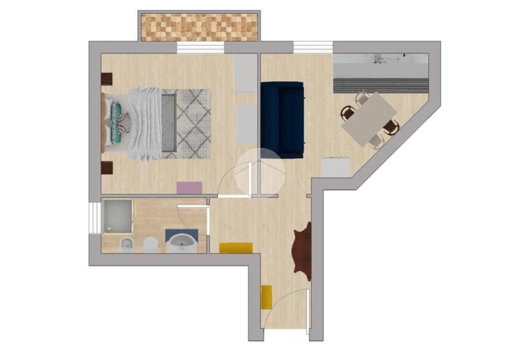 Via Vittorio Scialoia - Appartamento composto da ingresso, soggiorno con cucina a vista, disimpegno, bagno finestrato con box doccia, camera da letto matrimoniale e balcone. Presente solaio al piano sottotetto