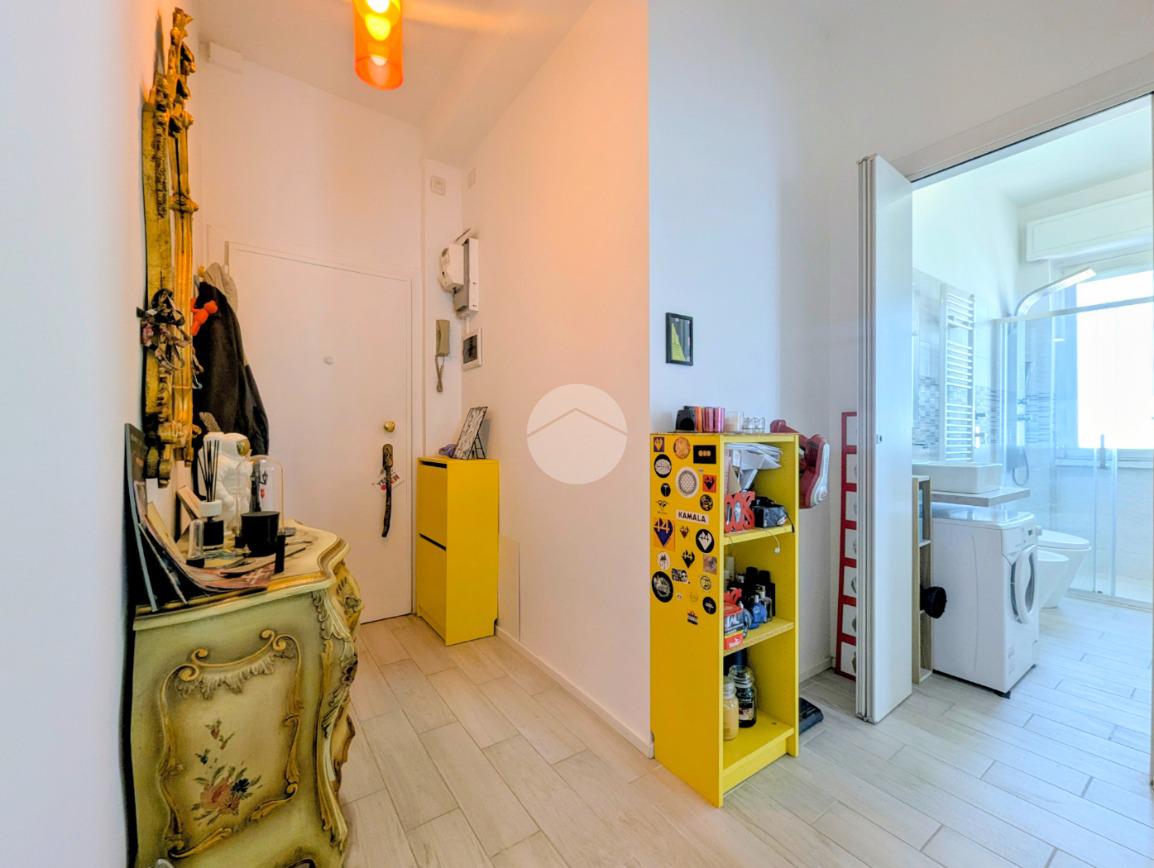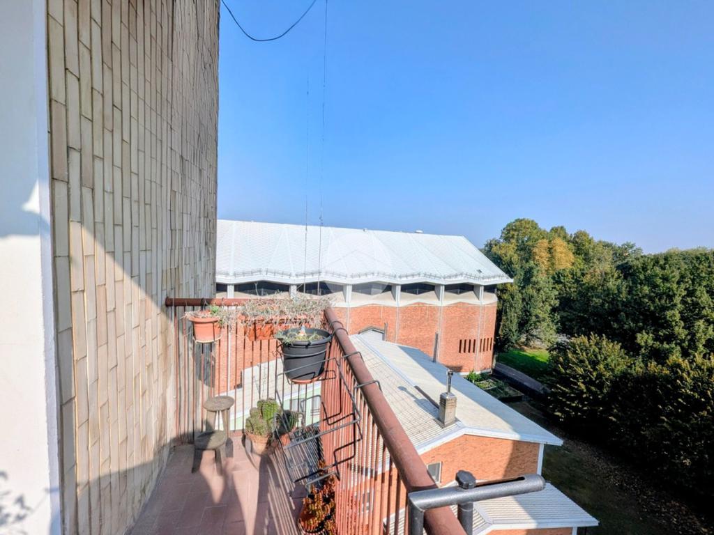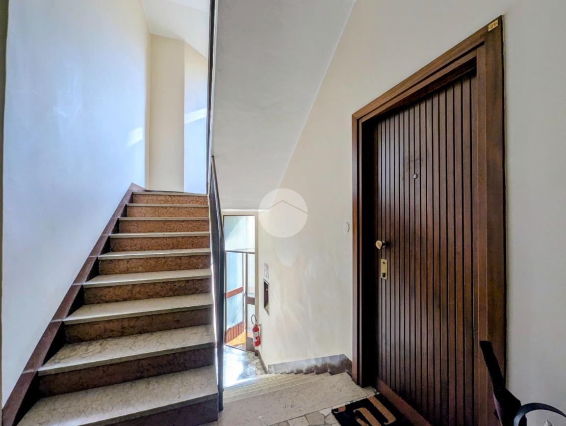 La casa si trova al quinto piano, con ascensore, di uno stabile civile anni '60 in ottime condizioni ed egregiamente manutenuto dotato di servizio di portineria intera giornata, giardino condominiale e rastrelliera bici.