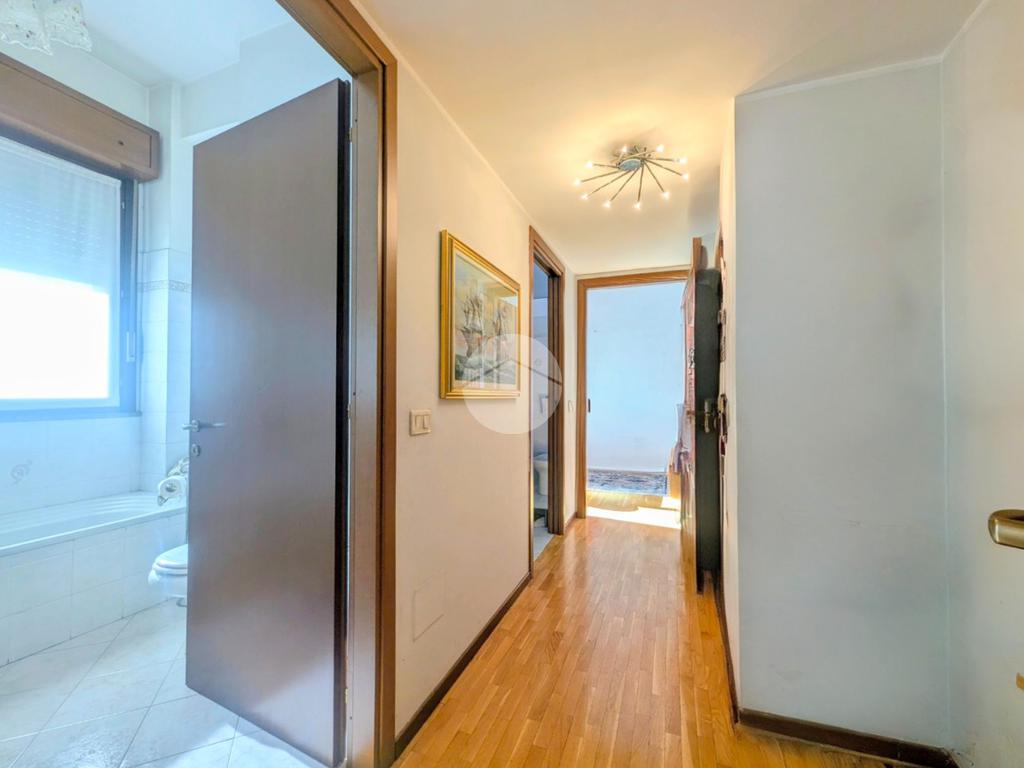 Immobile in buone condizioni di manutenzione: Porta blindata, infissi esterni in legno con doppio vetro a taglio termo e fono assorbente, pavimentazione in parquet di essenza di rovere in tutta la casa ad accezione di cucina e bagni dove troviamo della ceramica.