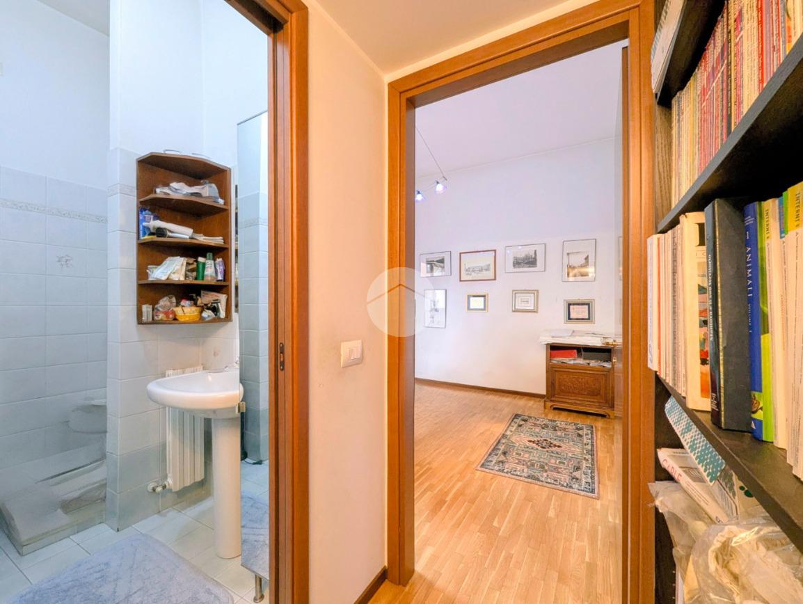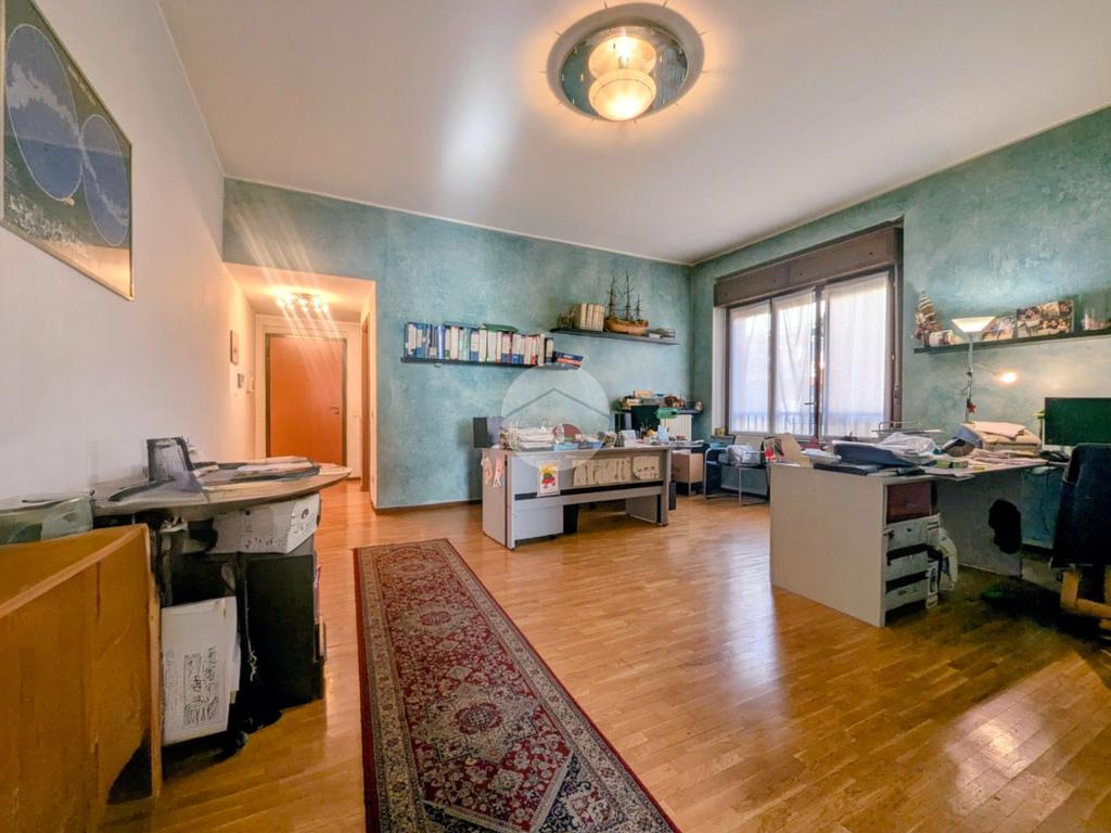 Via Pellegrino Rossi - Appartamento composto da ingresso, cucina abitabile, spazioso soggiorno, disimpegno, due camere da letto matrimoniali, bagno finestrato con vasca da bagno ed ulteriore bagno doccia. Immobile attualmente utilizzato come ufficio. Possibilità di acquisto box ad uso autorimessa al piano S1.