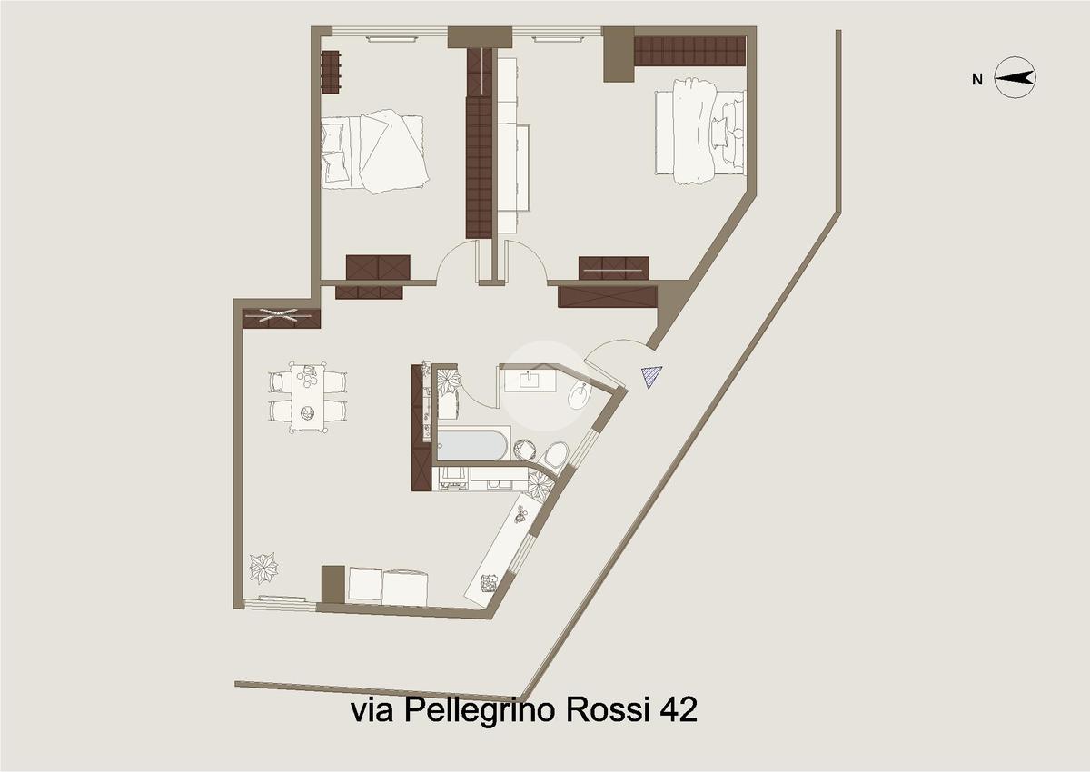 Via Pellegrino Rossi - Appartamento composto da ingresso, soggiorno con angolo cottura a vista, corridoio, bagno finestrato con vasca e due ampie camere matrimoniali. Presente vano solaio al piano sottotetto.