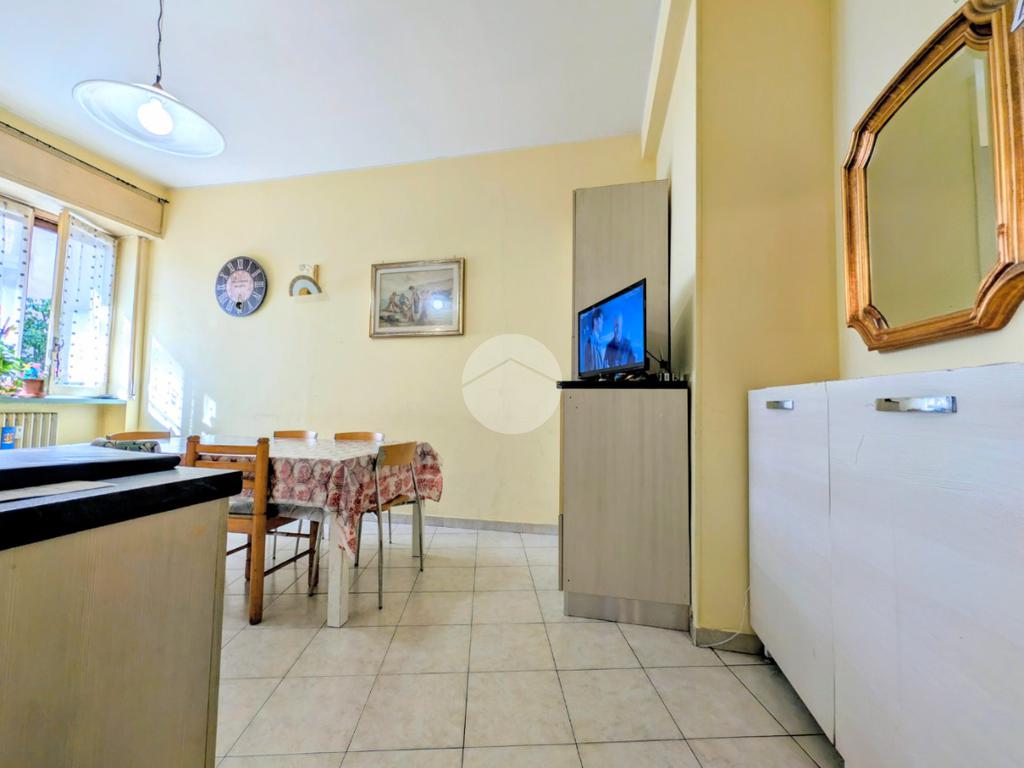 La casa si trova al piano rialzato di uno stabile civile degli anni '60 dotato di ascensore, servizio di portineria per l'intera giornata e posto auto nel cortile condominiale.